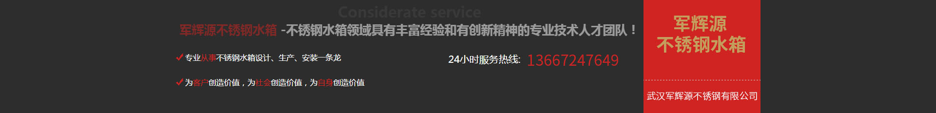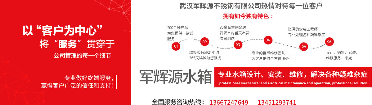 武漢軍輝源不銹鋼有限公司是華中地區(qū)專業(yè)生產(chǎn)不銹鋼水箱的環(huán)保企業(yè),公司集不銹鋼水箱開發(fā)設計、生產(chǎn)、銷售、維修、售后服務為一體。